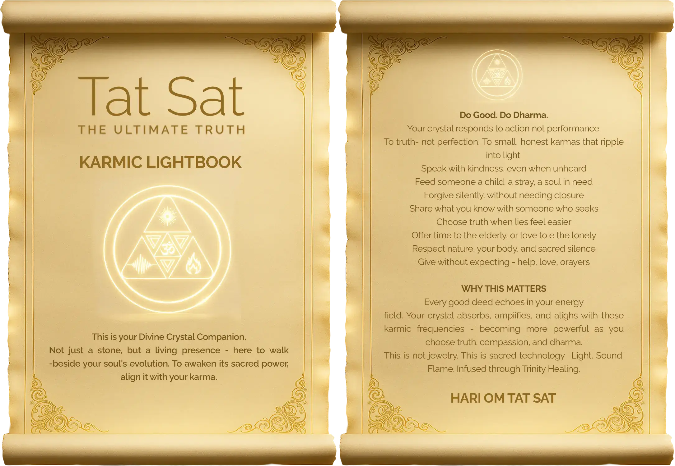 At Tat Sat, every product we serve, is not just a piece of crystal. it's Infused with Trinity Healing: Light, Sound, and Fire. Our offerings help realign your energetic blueprint with the ancient forces of the universe. They are designed not just to heal, but to burn karmas, preserve dharma, and awaken the light within. We don’t just offer energy tools, we offer energy contracts which your soul already chose before entering this lifetime.